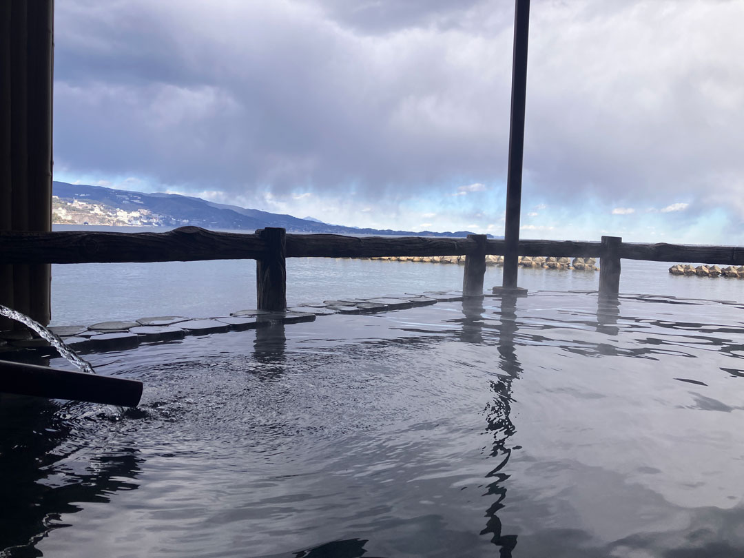 網代へ足を伸ばし、平鶴の海へと続くような露天風呂(左、大きい画像)で至福のひととき。熱海に戻ると、朝の静けさが嘘のような大賑わいだ。魚とやも満席で待ちが発生。駅ビル・ラスカ熱海の屋上にBBQテラス(画像)を発見し、食材持ち込みプランがあることをメモ。次はここもアリだ。 帰路の踊り子4号(画像では、成城石井の地ビールを片手に、記念館からの急ぎのHP修正依頼に対応。揺れる車内での作業も、車窓を流れる景色があれば楽しくもある。
