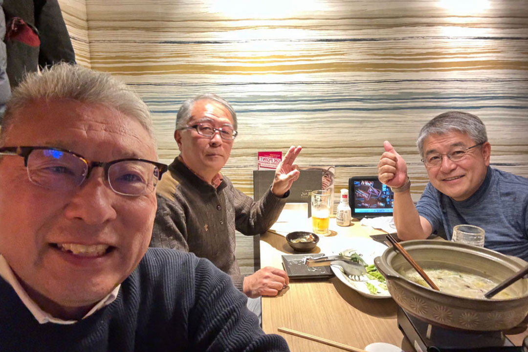 18時からは東京・八重洲にて、青森、上野と縁を繋いできたジパング世代3人で一献。次は草津温泉での宿泊を誓い合う。集合写真で目を閉じてしまったオイラ(画像)だけど、ChatGPTに目を開けてもらう(画像)という現代の魔法で解決。 9年前(右、大きい画像)は、大雪に負けずジム活を梯子(画像)していた。求めるものは、鉄路と美酒に方向が変わったけれど、元気に動き続けたい。
