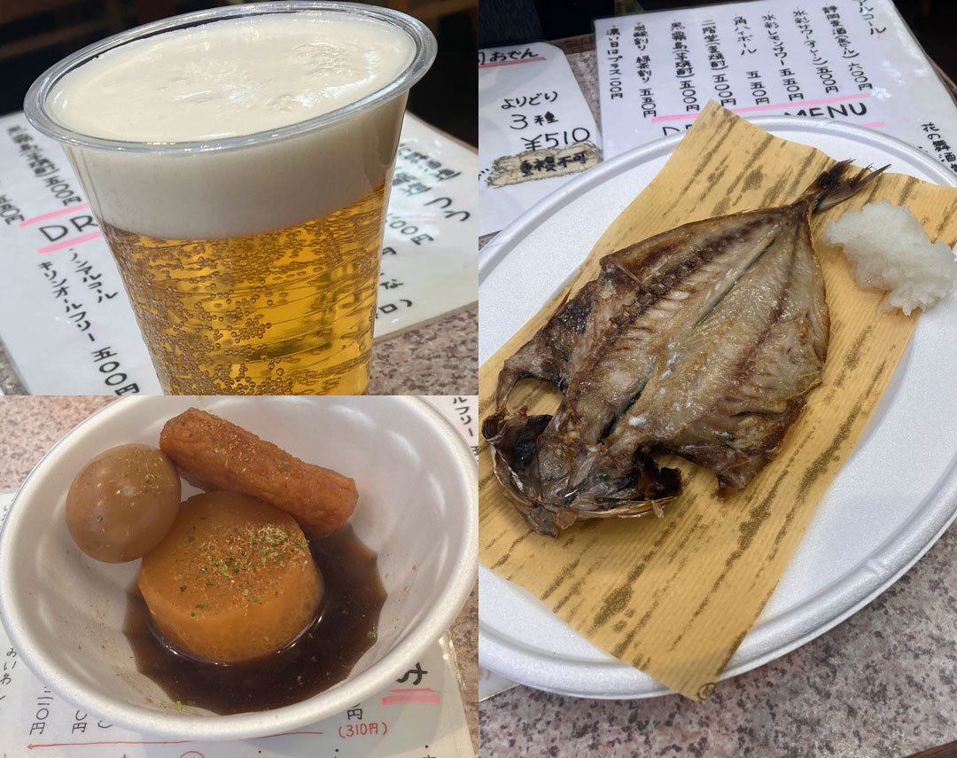 連日-4℃の朝の楽しみはラジコ。小川彩さんが語る一ノ瀬美空さんとの宮城旅に耳を傾ける。18歳とは思えない落ち着き、フフフの照れ笑いに癒やされる。沼津駅の桃中軒で二度揚げかき揚げそばを狙うも、休憩時間着と分かり、熱海で降りて、魚とや(画像)で静岡麦酒、静岡おでん、アジの開き(画像)。結局、三島駅ホームの桃中軒(画像)で海老と野菜のかき揚げそば(画像)。