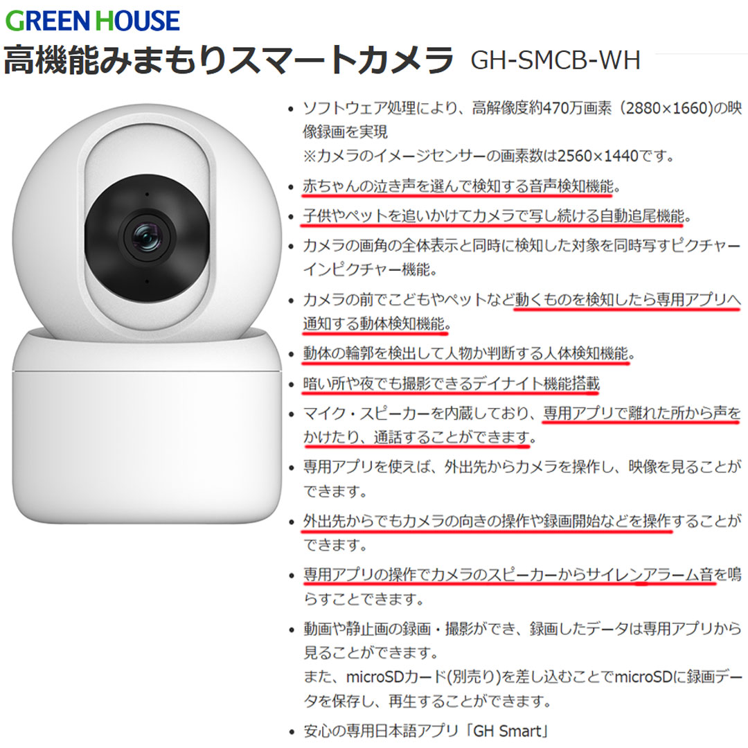 ガソリンを給油したら、前回より3円/L高くなっていた。久しぶりに、ホームセンターをちら見。安価な見守りカメラ(左、大きい画像)を発見。税込2980円で買えるはグリーンハウスの製品(画像)。かつて、リッキーを飼い始めた頃だったか、見守りカメラが欲しいなと思ったことがあるけど、こんな値段で買えるかとビックリ。