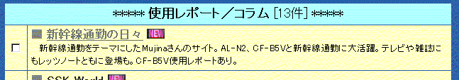 @niftyのFPANAPC(Panasonic PC Users's Forum)のスタッフの方から、リンクを張った旨、掲示板に書きこみをいただく。let's noteの虜の自分にとっては、先代のAL-N2を導入する頃から2代目のCF-B5Vの導入まで、時々、お世話になっているフォーラムであり、とっても光栄。掲載場所は、リンクの使用レポート/コラムのページ。掲載内容はこちら。