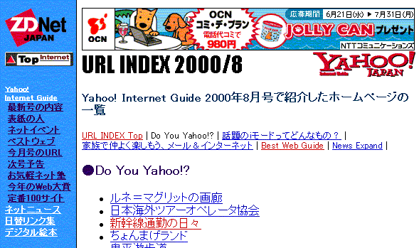 Yahoo! Internet Guide(8月号)(ソフトバンク)(2000/6/29) [先頭に戻る]