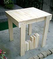 松下電工のホームページに作り方が載っていた、ガーデンチェアとガーデンテーブルが最初の作品。材料は、ホームセンターで入手できる2x4材のみ。